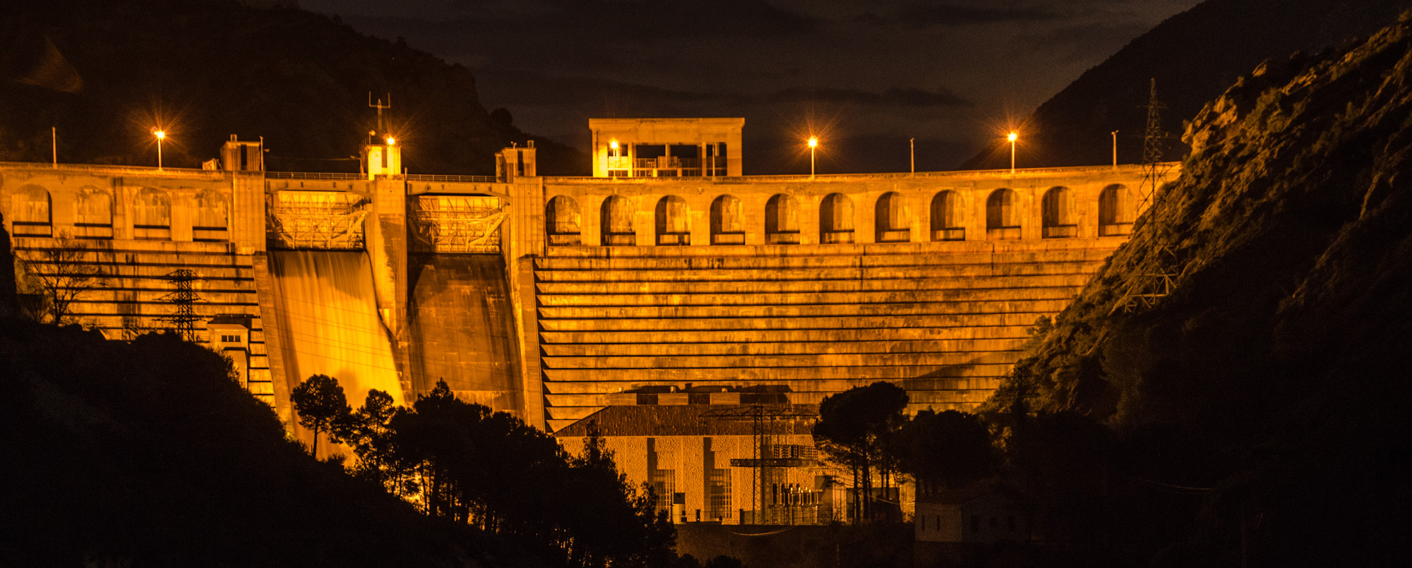 El projecte de construcció data de 1935 però no fou fins a 1946 que s'inicien, modificant el projecte inicial. El 1953 hi hagué un fort aiguat que ralentí les obres però finalment s'acabaren el 1956. La seva inauguració oficial es va fer el 30 de juny de 1959.